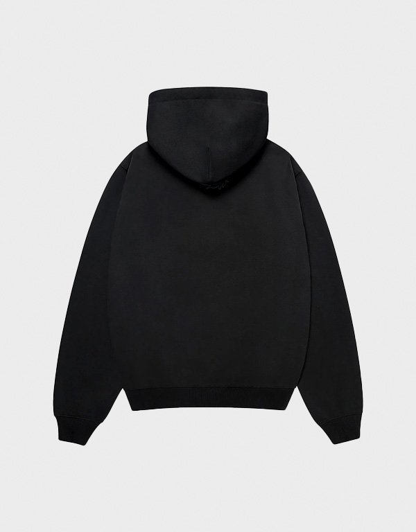 The Broken Planet Puff Print Stargazing Black Hoodie is a pullover made from a comfortable cotton-polyester fleece blend fabric, ideal for casual wear with a cosmic-inspired theme. It features a classic hooded collar with drawstrings, full-length rib-knitted cuffs for a snug fit, and a kangaroo pouch pocket for convenience. The hoodie is black with unique puff print graphics reflecting a stargazing or cosmic design theme, emphasizing style and comfort.