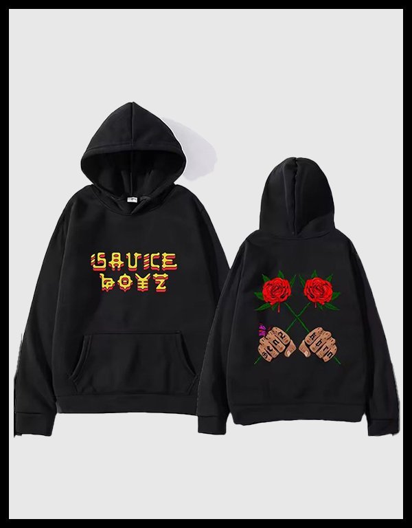 Show off your love for Eladio Carrion with the Sauce Fleece Black Printed Hoodie—perfect for both comfort and style. Crafted from a soft fleece blend, this pullover hoodie features a cozy hood with adjustable drawstrings and full-length sleeves with rib-knit cuffs to keep you warm all day long. The bold printed design represents Eladio’s Sauce Boyz vibe, making it a standout piece for fans who want to stay stylish while staying cozy. Key specs include soft fleece material, pullover design, hooded collar, ribbed cuffs, and iconic printed graphics. Ideal for everyday wear or attending concerts.