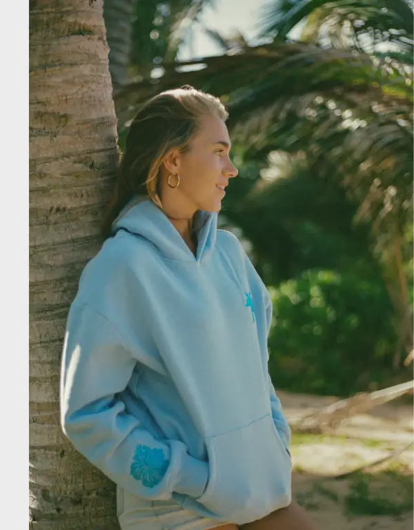 Designed in a calm blue hue, the Pink Palm puff Everything Comes in Waves Oversized Hoodie features a pullover front, full-length sleeves, rib-knitted cuffs, and a hooded collar to keep you snug all day.