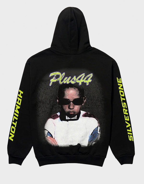 The Lewis Hamilton +44 Vintage Black Hoodie is a pullover hoodie crafted from soft fleece fabric, designed for casual everyday wear. It features a classic hooded style with a drawstring for adjustable coverage, full-length sleeves with rib-knitted cuffs for warmth, and a relaxed fit for comfort. The hoodie is solid black in color, emphasizing its vintage-inspired, simple yet stylish look, often associated with Lewis Hamilton’s racing number “44” branding.