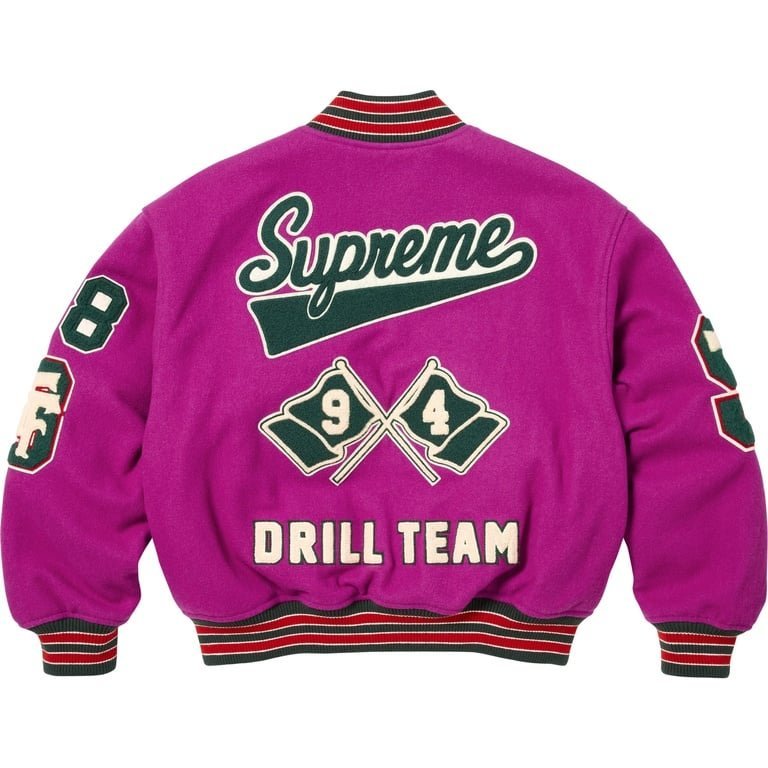 Stand out in style with the Supreme Magenta Drill Team Varsity Jacket, designed for men who want bold fashion with everyday comfort. Crafted from durable wool on the outside and lined with smooth satin on the inside, it keeps you warm without feeling bulky. The rib-knitted collar and cuffs give it that classic varsity vibe, while the button closure makes it easy to throw on and off. The eye-catching magenta color adds personality to any outfit, making it perfect for casual nights out or layering over your favorite hoodie. Whether you’re on the move or chilling with friends, this varsity jacket delivers both comfort and standout style.