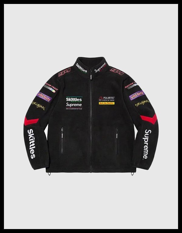 Supreme Skittles Polartec Black Varsity Jacket