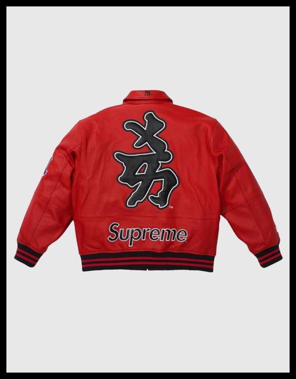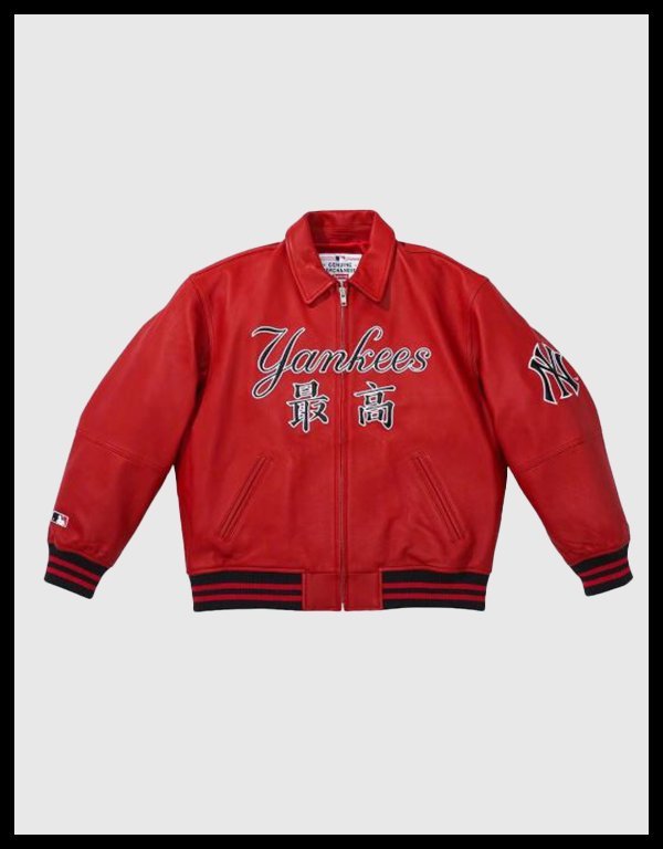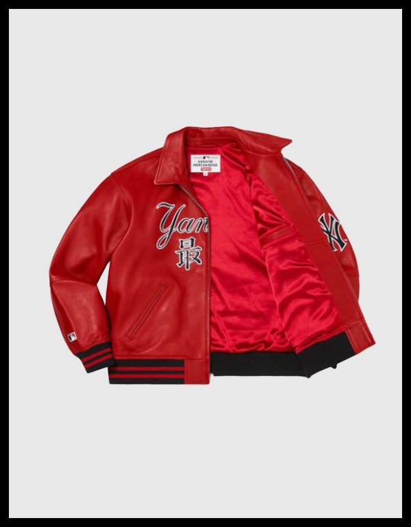 This Supreme Yankees Red Leather Jacket offers a luxurious feel and a powerful statement look rooted in baseball and urban fashion culture.