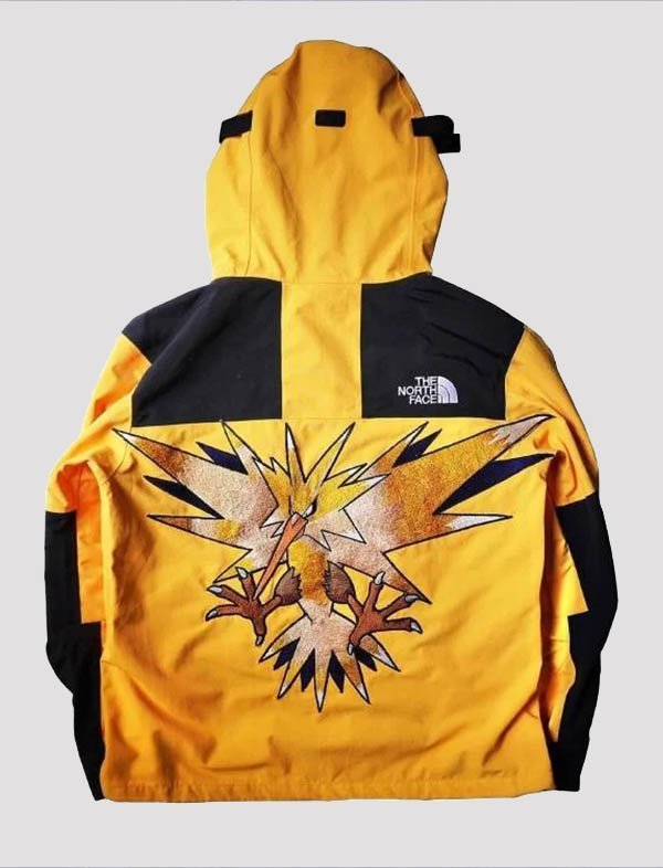 The North Face x Pokémon Jacket blends outdoor performance with playful design, crafted from durable polyester with a soft lining for comfort. This jacket features a hooded collar and full-length sleeves with elastic cuffs for weather protection and mobility. Available in vibrant color options including blue, yellow, green, and white, it showcases iconic Pokémon graphics for a nostalgic and fun streetwear vibe.